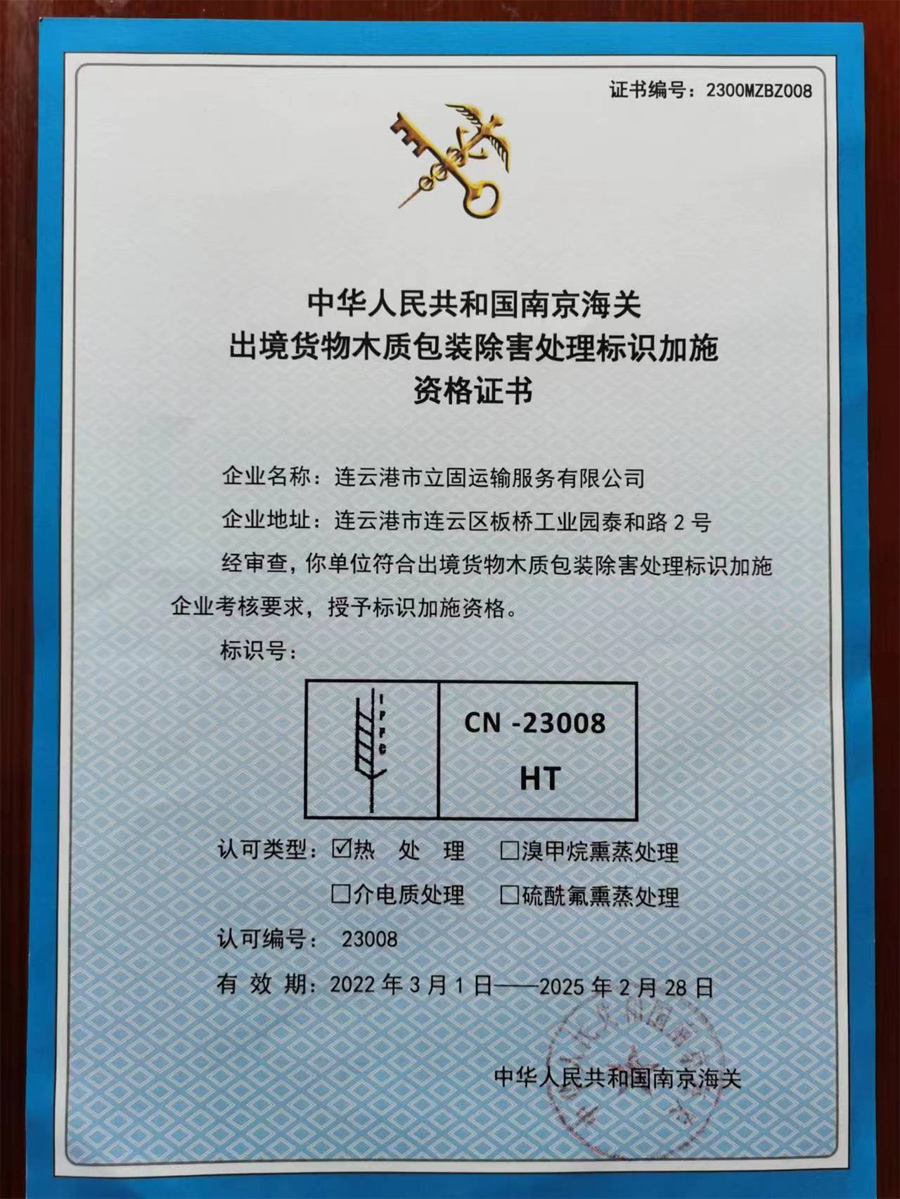 公司廠房占地20余畝,擁有專業(yè)機械設備30套,專業(yè)技術人員50余名。擁有一套現代化的能效高、效果好的熱處理窯,能較好的完成木材的干燥及有害生物的殺滅,已于2007年獲得出境木質包裝標識加施資格,是連云港海關指定定點木包裝熱處理單位。經我公司加工出口的木質包裝年產量20萬套以上,產值1600萬余元。目前是連云港區(qū)域同行業(yè)規(guī)模及產能最大的專業(yè)生產廠家。